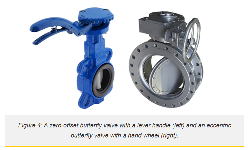 バタフライ バルブの種類バタフライ バルブにはさまざまな設計があり、それぞれ特定の用途と圧力範囲に対応します。バタフライ バルブは、ディスク クロージャの設計、接続設計、および作動方法に基づいて分類できます。ディスク クロージャの設計バタフライ バルブは、ディスクの中心線に対するステムの位置とバルブ シートの表面角度に応じて、同心または偏心になります。同心バタフライ バルブの最も基本的な設計は、中心または同心のバタフライ バルブです。ステムはディスクの中心線を通過し、シートはバルブ本体の内径外周です (図 4 左)。このゼロオフセットバルブ設計は、効率的なシールがゴムシートの柔軟性に依存しているため、弾性シートとして知られています。閉じるとき、ディスクは90°回転中に最初に約85°でシートに接触します。同心バタフライバルブは低圧範囲に適しています。
